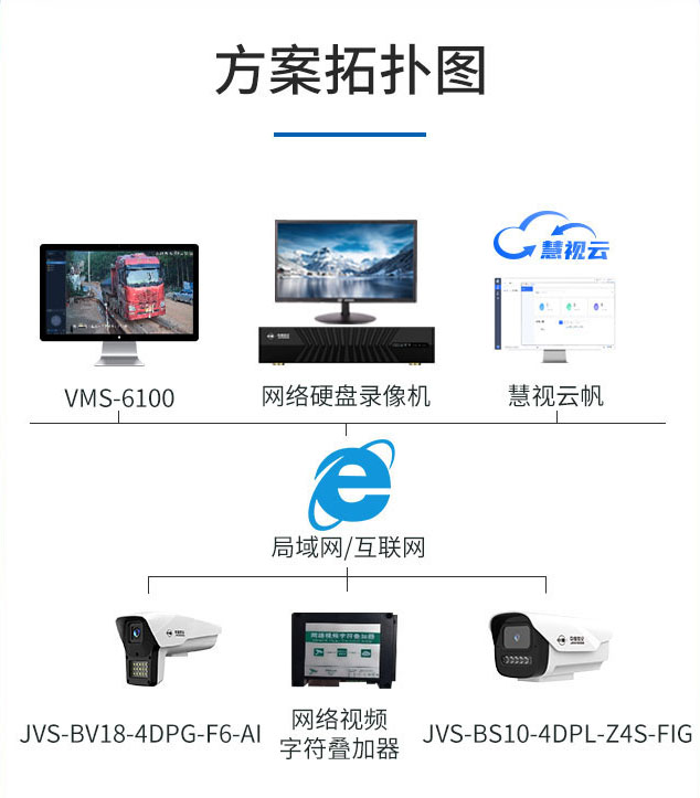 该尊龙凯时app的解决方案通过外接网络视频字符叠加器,可将摄像机采集的过磅重量信息,以水印形式实时叠加到监控画面中,能够同时显示车牌信息和过磅重量信息;同时,视频监控画面统一上传到慧视云帆平台,集中管理,监管人员可通过手机app/vms—6100/慧视云帆后台实时查看、远程查询过磅情况。