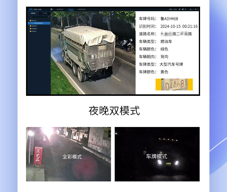 渣土车违规记录场景尊龙凯时app的解决方案,以车牌识别场景机实现车牌识别、记录查询等功能。其内置专用智能车牌识别算法,能够精准识别车牌号码、车辆类型、运营时间等关键信息;同时,摄象机支持“夜晚双模式”,车来启动车牌模式,准确识别渣土车车辆信息,车走自动切换环境模式,监控道路环境,实现24小时无人值守,辅助监管部门对渣土车进行管理和追踪。