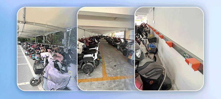 社区、商场、办公楼等区域的电瓶车充电桩、车棚环境